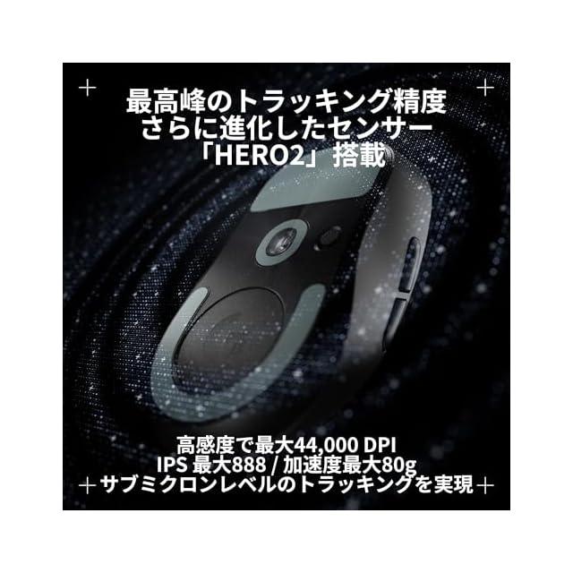 ロジクールG独自のHERO2センサー搭載/高速の8KHzポーリングレートにも対応/最大 32K DPIと888 IPSでサブミクロンレベルのトラッキング精度/より細かいニーズに合わせた設定が可能