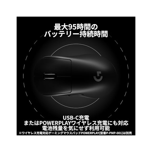 改善された電力効率/約1時間のフル充電で、約95時間の連続使用と省エネ性能を実現/プレイしながらのワイヤレス充電が可能な「POWERPLAYワイヤレス充電システム」にも対応、電池残量を気にせず利用できます ※POWERPLAY(G-PMP-001)は別売です