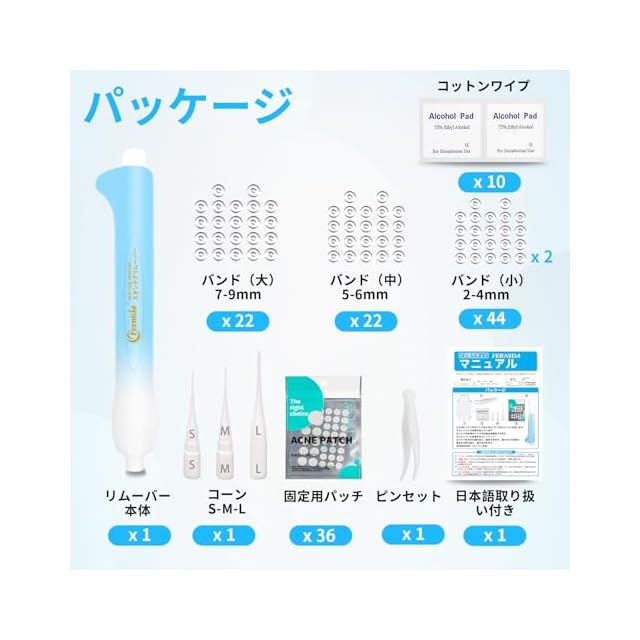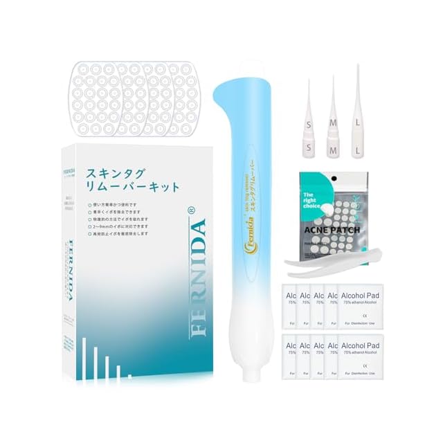 FERNIDA イボ取り スキンタグリムーバー 2mm~9mm イボ除去ツール 自宅 片手簡単操作 すべての肌タイプ対応 エコー素材採用 88回分バンド付き 3in1キット 顔 首 手 足 脇 胴体 日本語取り扱い付き | つむぎ屋