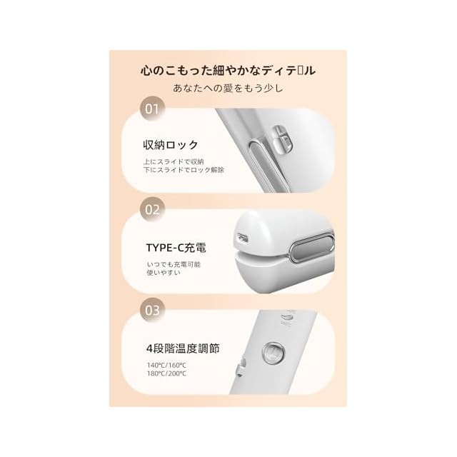 【コードが邪魔…そんなストレスから解放】Type-C充電式&コードレス設計のヘアアイロンで、どこでも自由にスタイリング。収納ロック付きで携帯にも便利。自宅での使用はもちろん、旅行や外出先でも大活躍。ヘアアイロン1本で毎日をもっとスマートに。