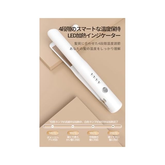 ヘアアイロン コードレスヘアアイロン 高濃度マイナスイオンで髪を保護、4段階のスマート温度調節、静電気抑制 ストレートアイロン ホワイト LZB