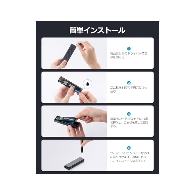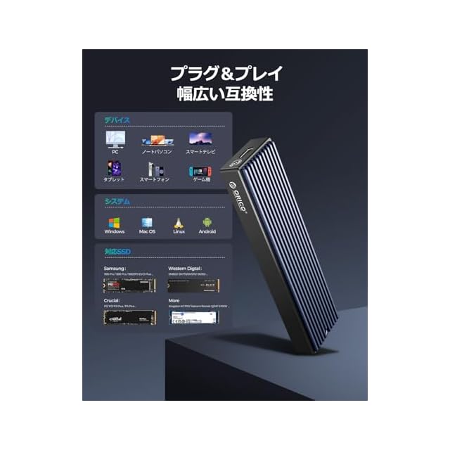 【対応性】22x30 / 22x42 / 22x60 / 22x80 mmのM.2 M Key / B&M Key(Nvmeのみ)のSSDに対応します。ご注意: B-Key / B+M Key(SATA)のSSDには非対応となります。