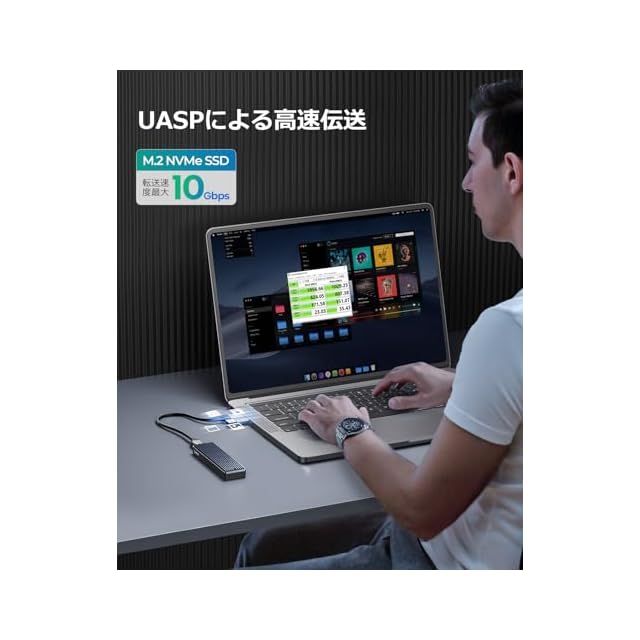 【10Gbps転送】NVME M.2 SSDをType C Gen2 に変換するM.2 SSDケースです。最大転送速度は10Gbps(理論値)まで、UASP機能も対応します。ご注意:UASPの高速的なデータ伝送性能を利用する場合、PCはUASP機能が付くか予めご確認ください。