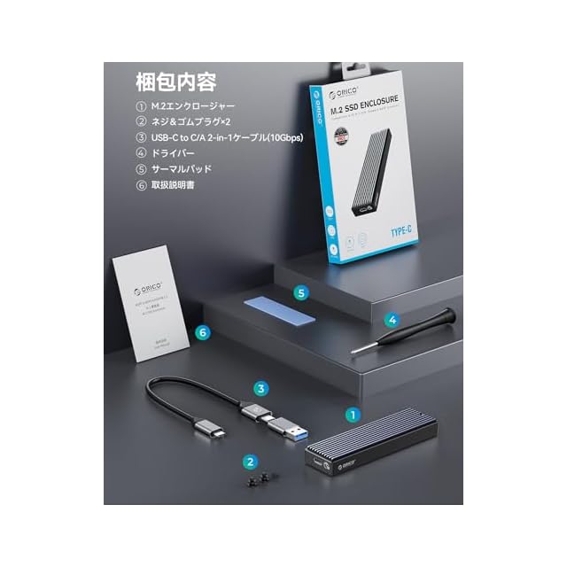 ORICO M.2 NVMe SSD 外付けケース USB 3.2 Gen2 10Gbps高速データ転送 NVMe/PCIE 対応2230/2242/2260/2280 SSD ケース M2 SSD 外付けケース 8TB容量に対応 UASPサポート ABS+アルミ材質 黑 M2PV-BK | つむぎ屋