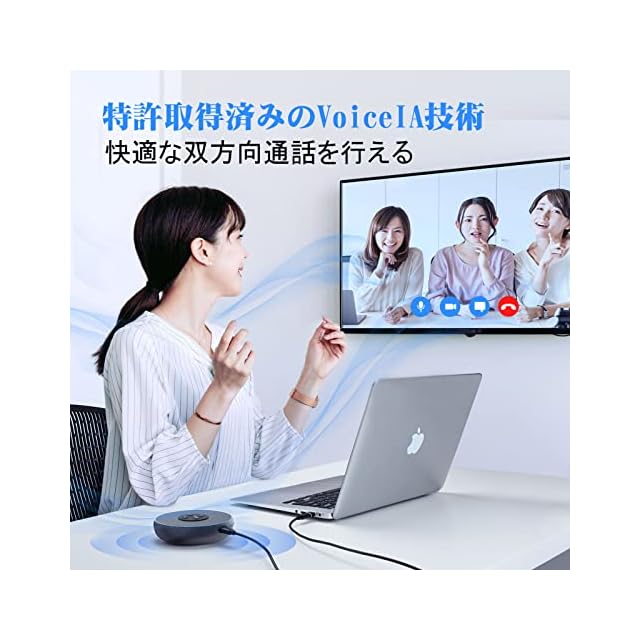 【優れた音声処理機能】エコーキャンセリングや残響抑制、ノイズリダクション機能を採用しており、クリアな通話を実現できたスピーカーフォンです。周囲の雑談の音、コピー機・エアコンのノイズ、キーボード打ちの音などを抑制でき、発言者の音を明瞭に展開できます。ストレスのないオンライン会議をサポートします。高品質な通話をする「Zoomミーティング」の公式認証を取得し、製品本体のミュートボタンとZoom上のミュート表示が連動するようになります。