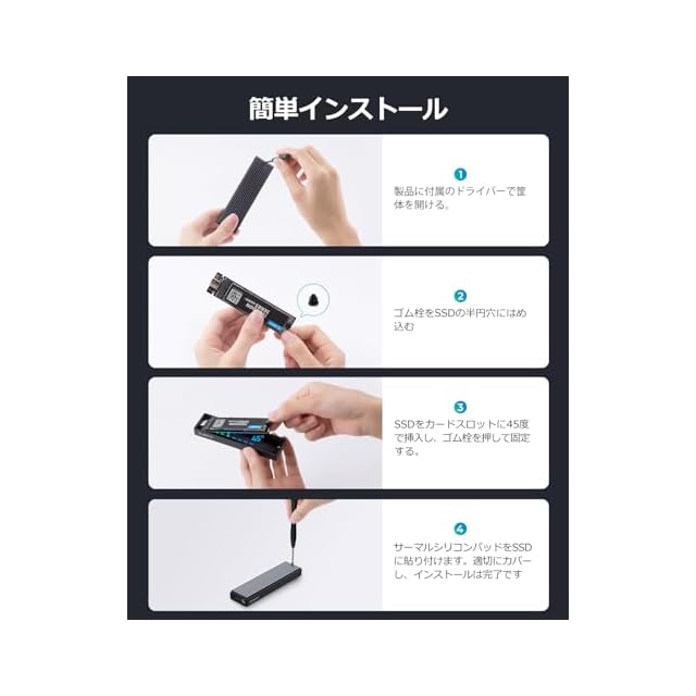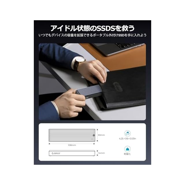 【優れた熱性能】ORICO SSD M.2 ケースアルミ合金トップとプラスチックボトム、冷却フィンデザインは、携帯性と良好な放熱性をします。★アルミ素材熱伝導性で、使用中にケース表面が高温になることをご注意ください。