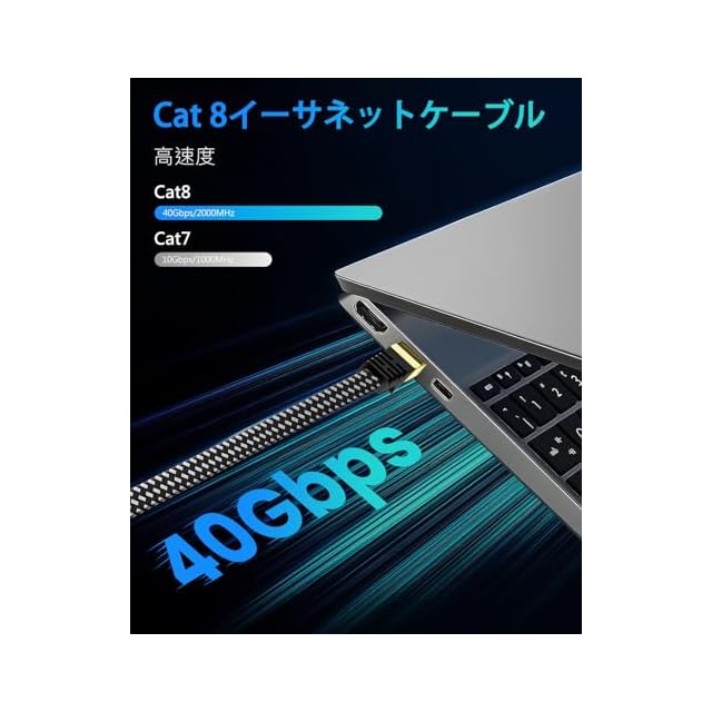 通信速度アップ: 有線lanケーブル カテゴリ8に準拠した高速LANケーブルで、次世代の40Gbps対応高速、2000MHz 伝送帯域幅のイーサネット環境を実現します