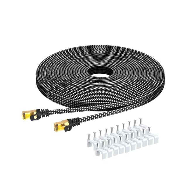 丈夫な編組デザイン: フラット超薄型、LANケーブル, 二重編組ナイロンの外装により、Cat-8イーサネットケーブルはより耐久性が高く、柔軟性があり、絡まりません。 に柔軟性に優れ、スリムながら頑丈で、壁に沿って並ぶのが簡単で、狭いところに大掛りな配線工事が心配なしで取り回しが効き配線できます