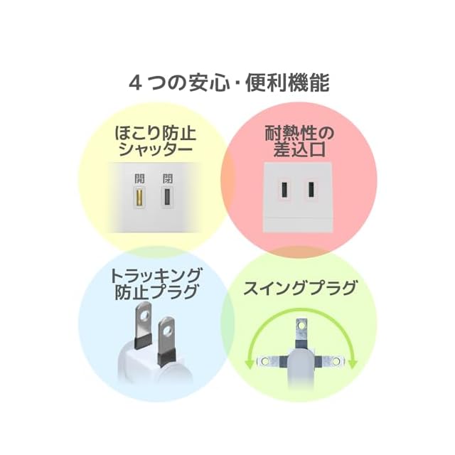 未使用時の差込口へのほこりの浸入を防止するほこり防止シャッターを装備しています。トラッキング現象による火災やお子様のいたずらによる感電・火災の防止に役立ちます。