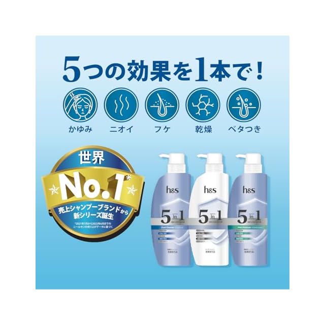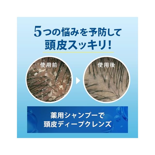 すっきり、洗って 5つの悩みにアプローチ! 5つの効果を1本で! 頭皮のかゆみ・におい・フケ・乾燥・ベタつきに。頭皮の水分量を保つ。