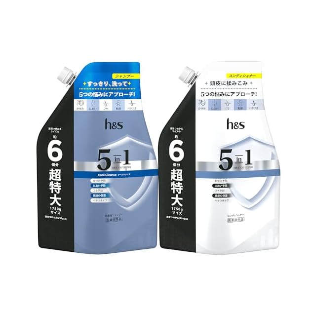【2個セット】h&s 5in1 クールクレンズ シャンプー コンディショナー セット 詰め替え超特大サイズ 1.75L×2個セット