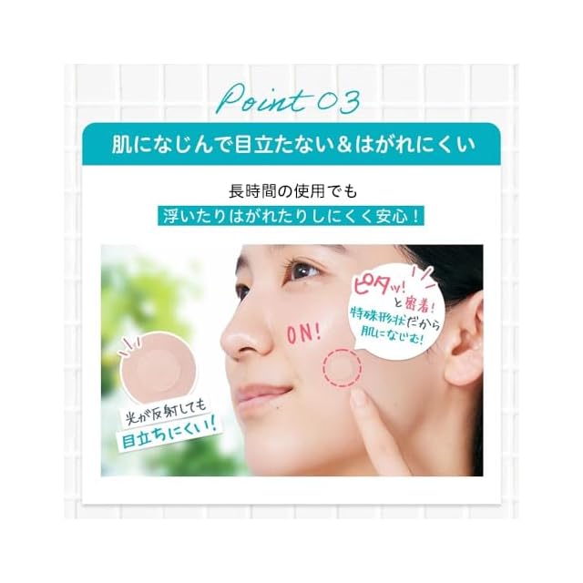 【肌になじんで目立たない&はがれにくい】長時間の使用でも浮いたりはがれたりしにくく安心!(こだわりの特殊形状で、ズレにくくはがれにくい。)