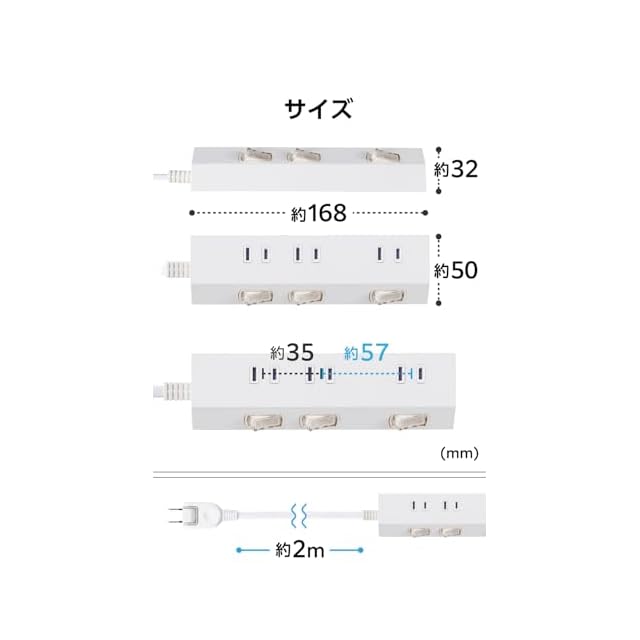 pattern:1)電源タップ単体 size:2m style:1)マグネット無し: