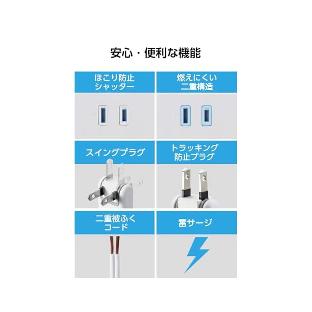 差込口には海外製のスマートプラグなど、極性による栓刃幅の違いがある2ピンプラグの接続も可能です。