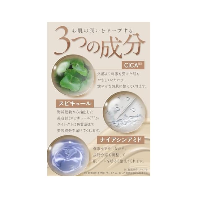 ✨【メイクしながら贅沢にスキンケアできる】ツボクサエキス(シカ)※1やナイアシンアミド※2など19種類の美容成分が配合でスピキュールにより肌の角質層まで美容成分を届けてくれる日中でもスキンケアしているようなお肌にしてくれるファンデーションです。※1整肌成分※2メラニンの生成を抑え、シミ、そばかすを防ぐ