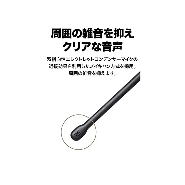 【ノイズキャンセリングマイク内蔵】近接効果を利用したノイズキャンセリング方式により周囲の雑音を抑え、相手にクリアな音声を提供します。また、付属のウインドスクリーンで自分の息によるノイズ(ポップノイズ)もカットできます。