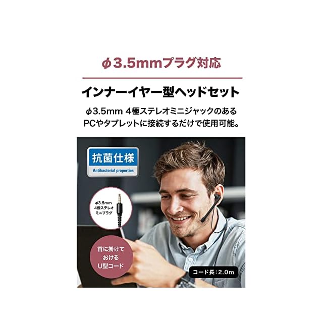 【汎用性の高いφ3.5mm4極ステレオミニプラグ搭載】φ3.5mm4極ステレオミニジャックのあるPCやタブレットに接続するだけで、そのまま使用できます。
