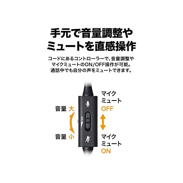 【手元コントローラーで直観操作が可能】コードにあるコントローラーで、音量調整やマイクミュートのON/OFF 操作可能。通話中でもPC 画面から目を逸らさずに、自分の声を瞬時にカットできます。