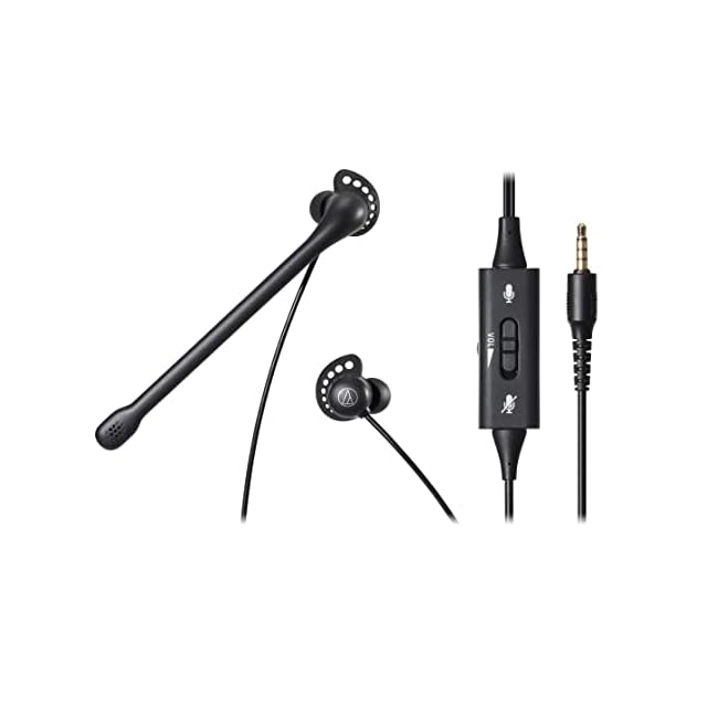 オーディオテクニカ ATH-202COM ヘッドセット 有線 ステレオ 3.5mm接続 ノイズキャンセリング マイク付き インナーイヤー イヤホン 軽量 手元コントローラー 抗菌・消臭加工 web会議 テレワーク windows mac Chrome | つむぎ屋