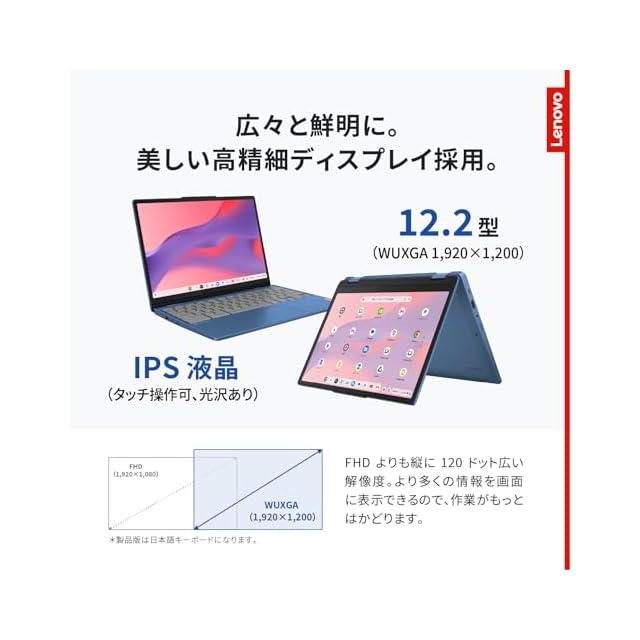 Lenovo Chromebook クロームブック IdeaPad Flex 3i Gen8 12.2インチ インテル® プロセッサー N100搭載 メモリ4GB eMMC 64GB バッテリー駆動12.0時間 重量1.25kg アビスブルー 82XH001KJP | つむぎ屋