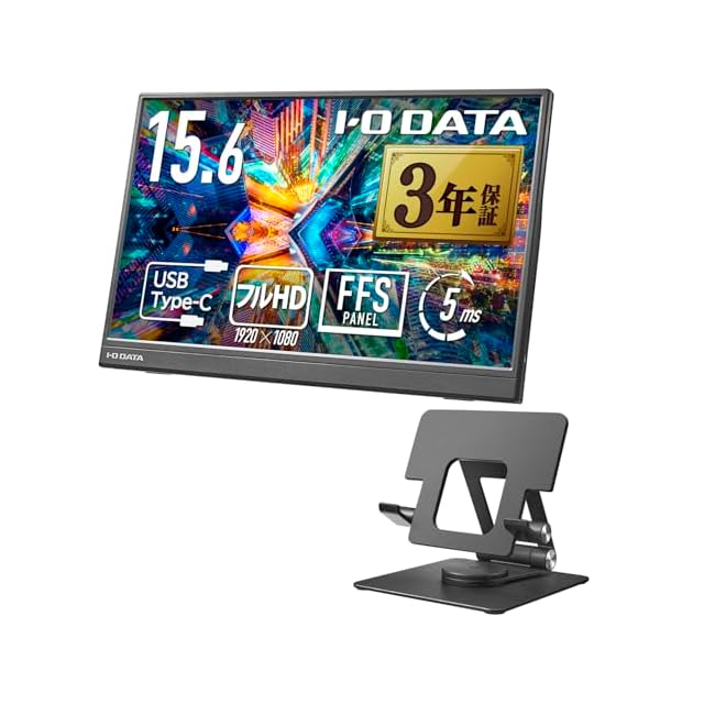 IODATA モバイルモニター 15.6インチ スタンドセット 省スペース フルHD (Switch/PC対応/HDMI(ミニ)/Type-C/土日サポート/日本メーカー) EX-YC162H-F | つむぎ屋