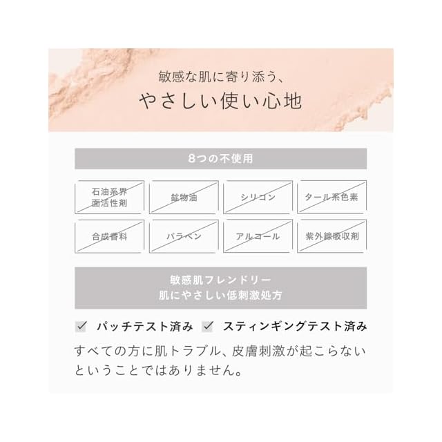 肌にやさしい低刺激処方:パッチテスト済み、スティンギングテスト済み(※すべての方に肌トラブルや皮膚刺激が起こらないわけではありません。)