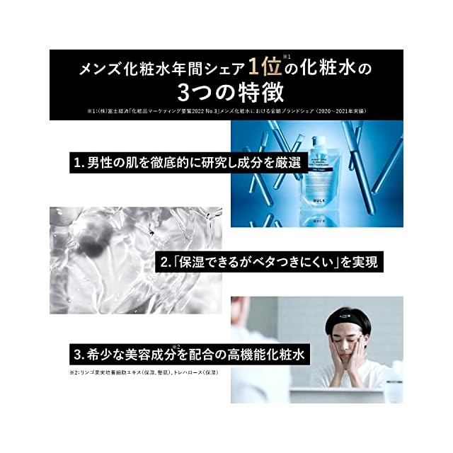 ✅【使用感】男性の肌を徹底的に研究し「高い保湿力を持ちつつ、男性でも使いやすい使用感で低刺激の化粧水」をコンセプトに開発しました。6つの無添加・フリー設計で、敏感肌の方でも安心してご使用頂けます。サラッとした心地よい使用感なのに、美容成分が自然な皮膜を作り、潤いを実感できます。