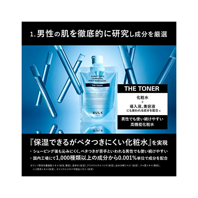 ✅【男性に特化した開発】男性の肌は水分が不足しがちで、それを補うために過剰な皮脂分泌が起こります。THE TONERは、この男性特有の肌質を考慮して開発された、高保湿でベタつかない低刺激の化粧水です。