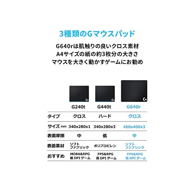【Logicool G G640r ゲーミングマウスパッド】Logicool Gのゲーミングマウスのセンサーに最適化された表面加工でロジクールGマウスセンサーの精確性と精度をさらに向上。G640rはラージサイズでFPSなど大幅にマウスを動かすゲームに最適。