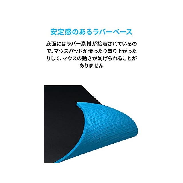 底面にはラバー素材が接着されているので、マウスパッドが滑ったり盛り上がったりして、マウスの動きが妨げられることがありません。