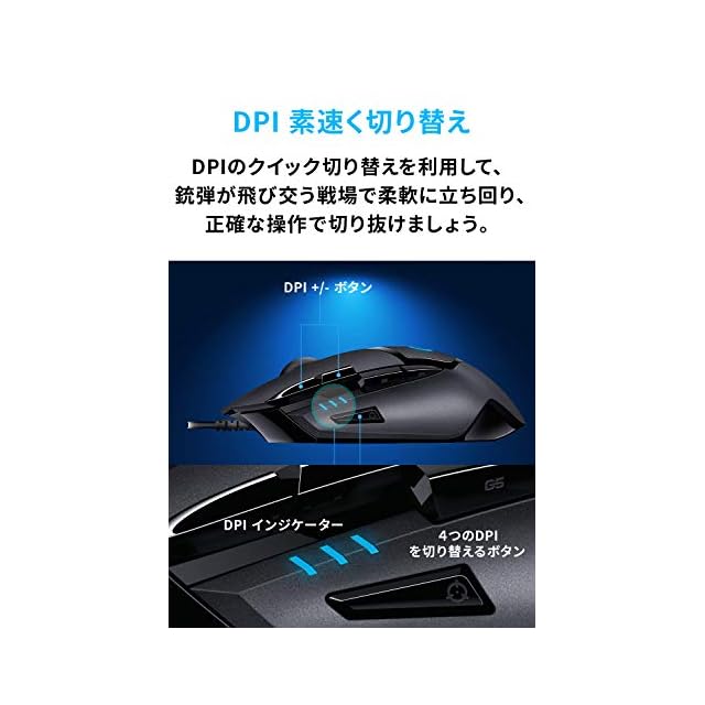 【FPSゲーム向け瞬時の切り替え対応】ゲームの場面にあわせ、4つのDPI設定を瞬時に切り替え。マップ上で敵を攻撃(250 DPI)してから、すばやく逃亡(4000 DPI)可能。