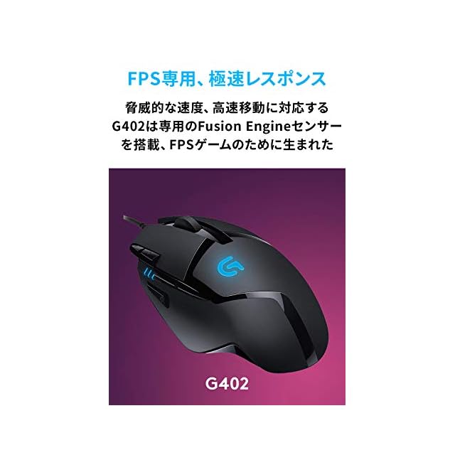 【Logicool G G402 有線ゲーミングマウス】専用のFusion Engineハイブリッドセンサーと32ビットARMプロセッサーを搭載したFPSゲーム用のゲーミングマウス。