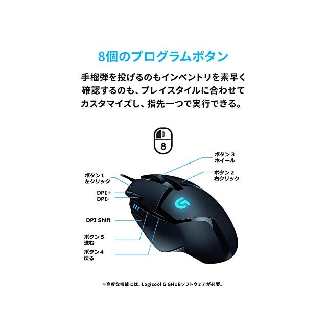 【プログラム可能な8個のボタン】プログラム可能な8個のボタンを使ってマウスをカスタマイズ。手榴弾を投げる、インベントリにアクセスするなどの操作に簡単アクセス。