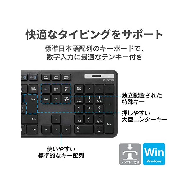 サクサクと軽い打ち心地を実現したキー設計を採用した薄型キーボードです。