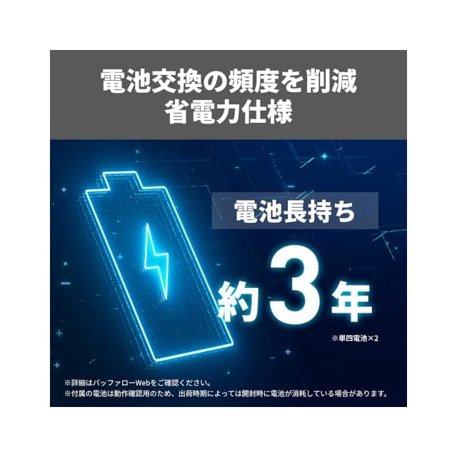 【省電力】単4電池2本で約3年間使える省電力設計で、電池交換の頻度を削減できます。