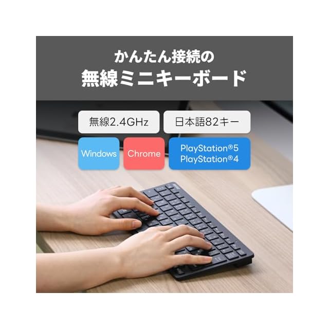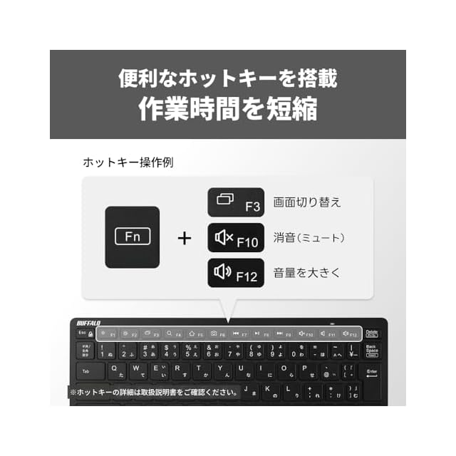 【コンパクト】限られたスペースでの使用や、持ち運びにも便利な薄型&コンパクト設計のワイヤレスキーボードです。