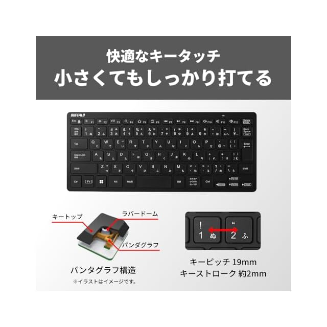 【軽快なキータッチ】パンタグラフ式のキーを採用することで、軽快で確実なキータッチを実現します。