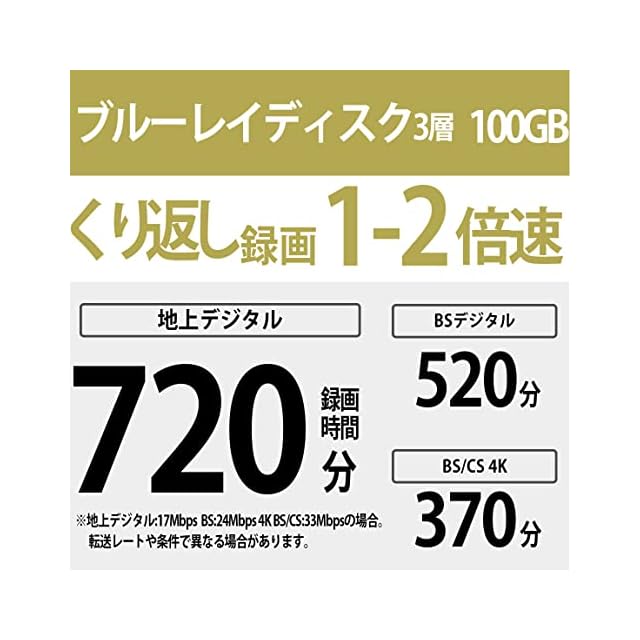 地デジ:720分 BSデジタル:520分(DRモード時/1枚当たり)