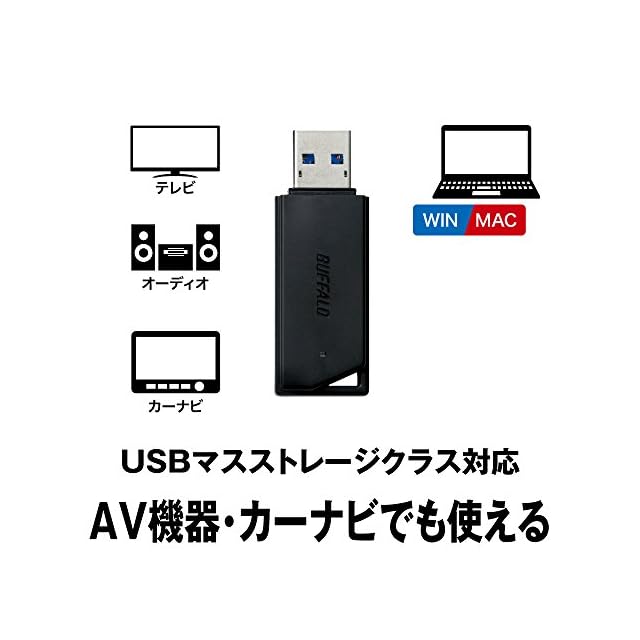 本商品は、USBマスストレージクラスに対応しています。USBマスストレージクラスに対応しているテレビやオーディオ、カーナビなどのUSBポートに接続するだけ※でそれらの機器でお使いいただけます。USBマスストレージクラスは規格化されているため、対応機器同士であれば認識するかどうかを気にすることなく、安心してご利用いただけます。
