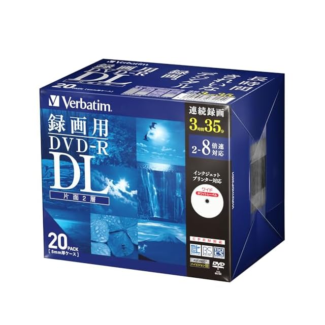 バーベイタムジャパン(Verbatim Japan) 1回録画用 DVD-R DL CPRM 215分 20枚 ホワイトプリンタブル 片面2層 2-8倍速 VHR21HDP20D1