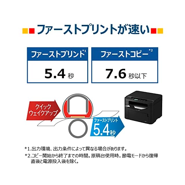 A4毎分23枚(A4片面等倍時。普通紙、同一データを連続印刷した場合の速度)ファーストコピー9秒以下