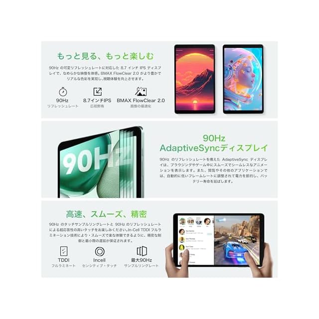 商品名:【タブレット 8インチ Wi-Fi/SIM通話モデル】Bmax I8 Plus Android15 タブレット、16GB+128GB+1TB拡張、8コアCPU T7250 、90Hz高刷新率8.7インチ Tablet、4G LTE+GPS搭載、6000mAh+Type-C充電、Widevine L1対応+無線投影、5GWiFi+BT5.2+OTG、顔認識+画面分割+児童保護+FMラジオ