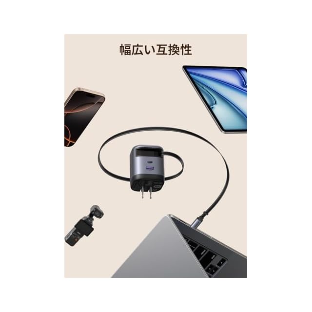 商品名:UGREEN 65W 充電器 巻き取り式【単ポート65W】69CM 8階段調整可能 伸縮式 Type-C ケーブル内蔵 USB-C/USB-A 3ポート同時充電可能 PD3.0/PPS 旅行/出張/収納/スマホ/iphone17 16/パソコン/タップレットなどType-C適合 200g