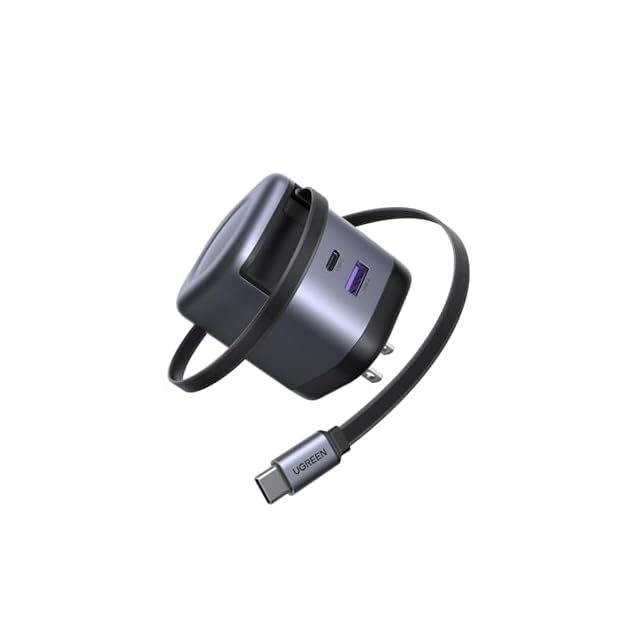 UGREEN 65W 充電器 【69CM 巻き取り式】 8階段調整可能 USB-Cケーブル内蔵 3ポート同時充電可能 PD3.0 旅行/出張/収納/スマホ/パソコン/タップレットなどType-C適合