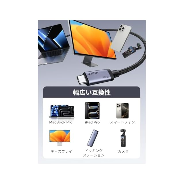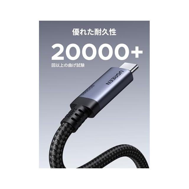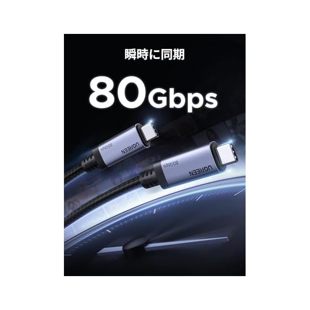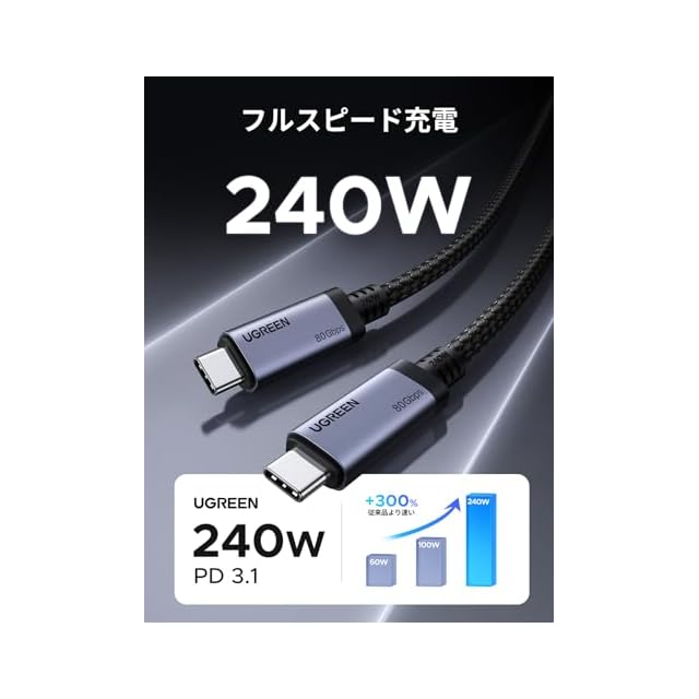 商品名:UGREEN USB4 Gen4 ケーブル 80Gbps双方向高速データ伝送 PD3.1 240W急速充電対応 Thunderbolt4/3 USB 3下位互換 16K@60Hz映像出力 高耐久性ナイロン編み USB-C to USB-Cケーブル iphone17/Galaxy S24/MacBook Pro/iPad/Android/ハブなどタイプC対応機器接続用 ブラック1m