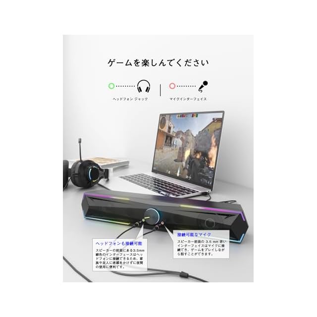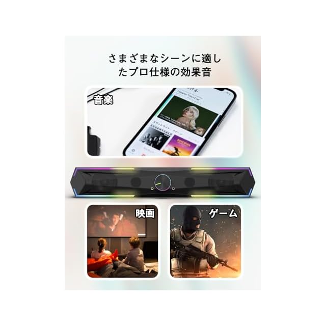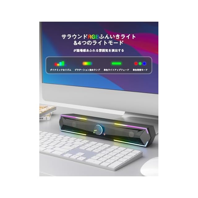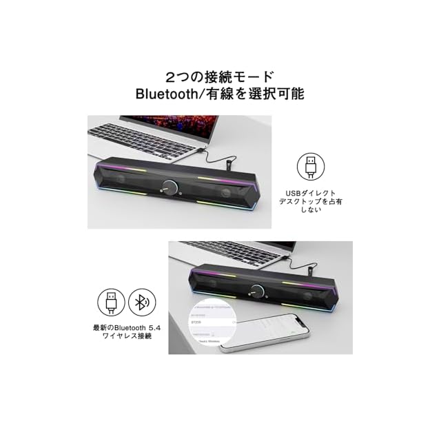 商品名:Kstime【最新Bluetooth5.4 & USBダイレクト】PCスピーカー サウンドバー 10W RGB ゲーミングスピーカー 六つのスピーカーユニット 二重対称インバーターチューブ ステレオ 大音量&豊かな低音 ラップトップ、タブレット、スマートフォンに対応、USB給電式のパソコンスピーカー