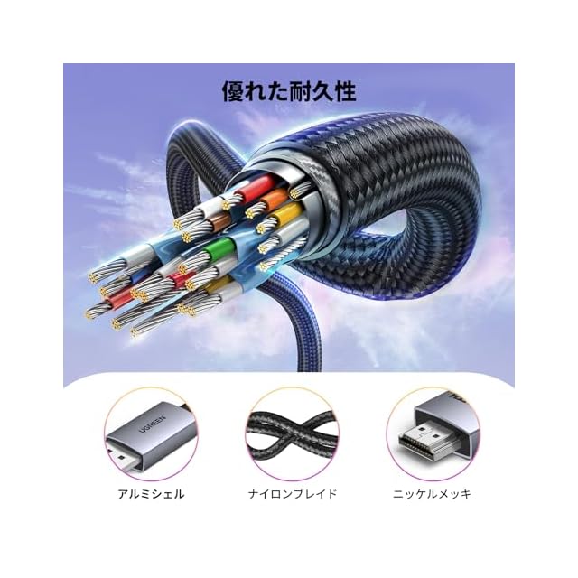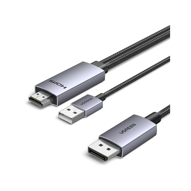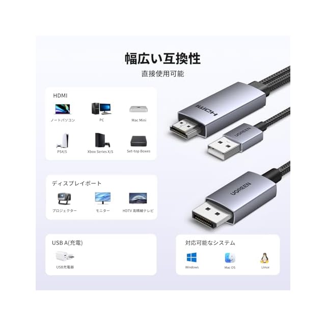 商品名:UGREEN HDMI to DisplayPort 変換ケーブル 4K@60Hz対応 アクティブ式 HDMI to DP 単方向伝送 HDR, Dolby, 21.6Gbps 高耐久性アルミ製 複製・拡張モード対応 モニター, ノートパソコン, デスクトップPC, HDTV, AMD NVIDIAなどに対応 2M
