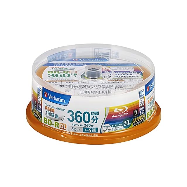 商品名:Verbatim バーベイタム 1回録画用 ブルーレイディスク BD-R DL 50GB 20枚 ホワイトプリンタブル 片面2層 1-4倍速 VBR260YP20SV1