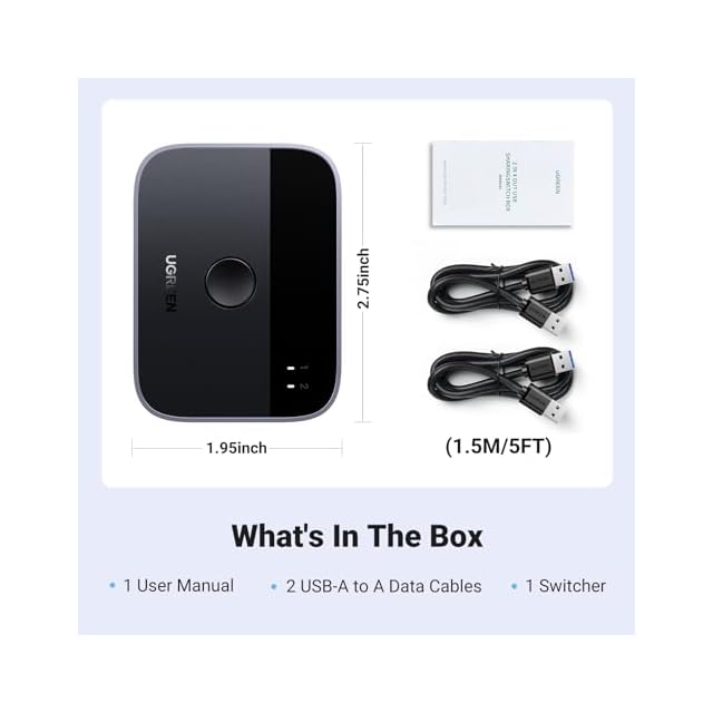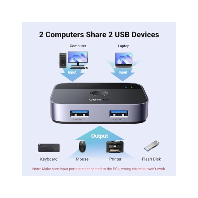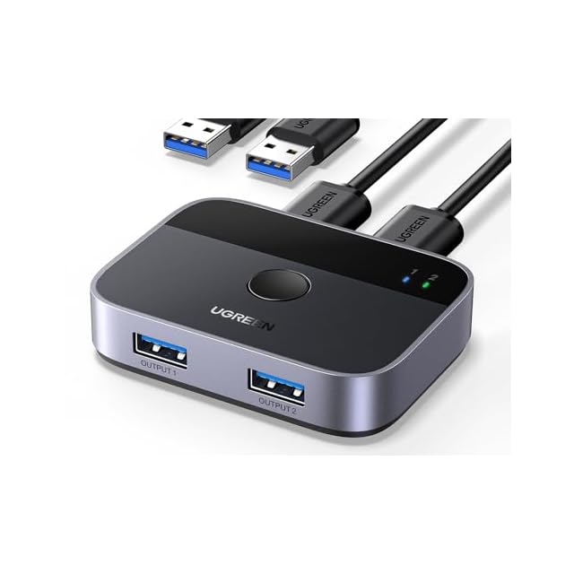 商品名:UGREEN USB3.0切替器 2入力2出力 USB切替機 2PCでキーボード/マウス/プリンタ/スキャナ/Webカメラなどを共有、2台のPC用プリンタ切替機、2*USBポート切り替え機 2本USBケーブル付き