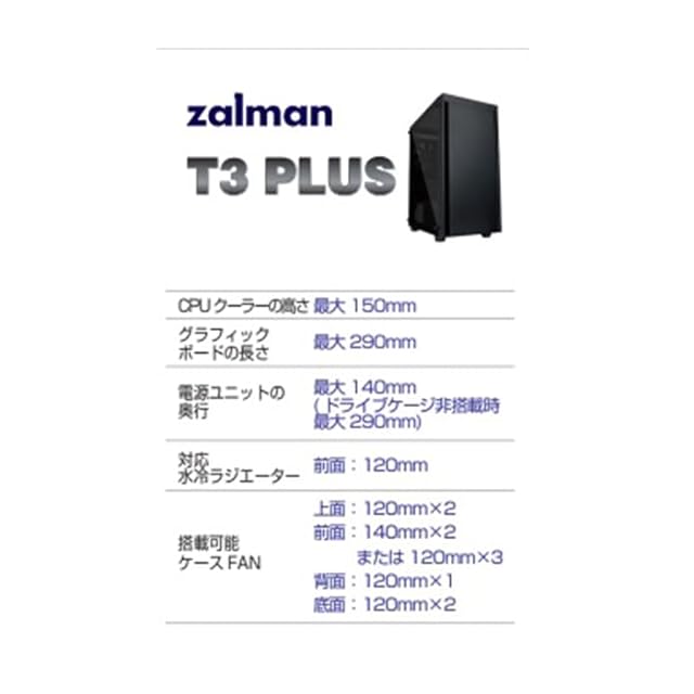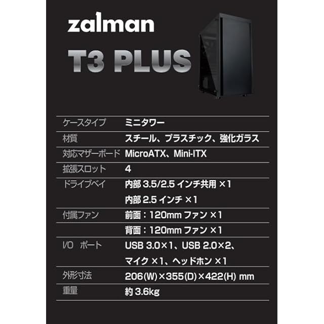 商品名:ZALMAN T3 PLUS 120mmファン 2基 標準搭載 Micro-ATX ミニタワー PCケース T3 PLUS CS8683